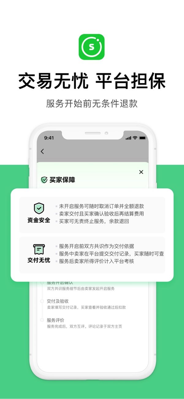 答:四重保障是:①钱安全,没验收前钱在平台;②按时开始,到时间就开做;③按要求做完,按订单内容交活;④本人做,卖家亲自干。对应防的风险:①防付了钱没得到合格服务;②防服务拖时间耽误项目;③防内容和订单不一样;④防卖家转包让质量变差。